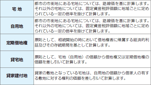 土地評価はその種類によって評価方法が異なってきます。当相続支援センターでは、適正な土地評価を お手伝いします。
